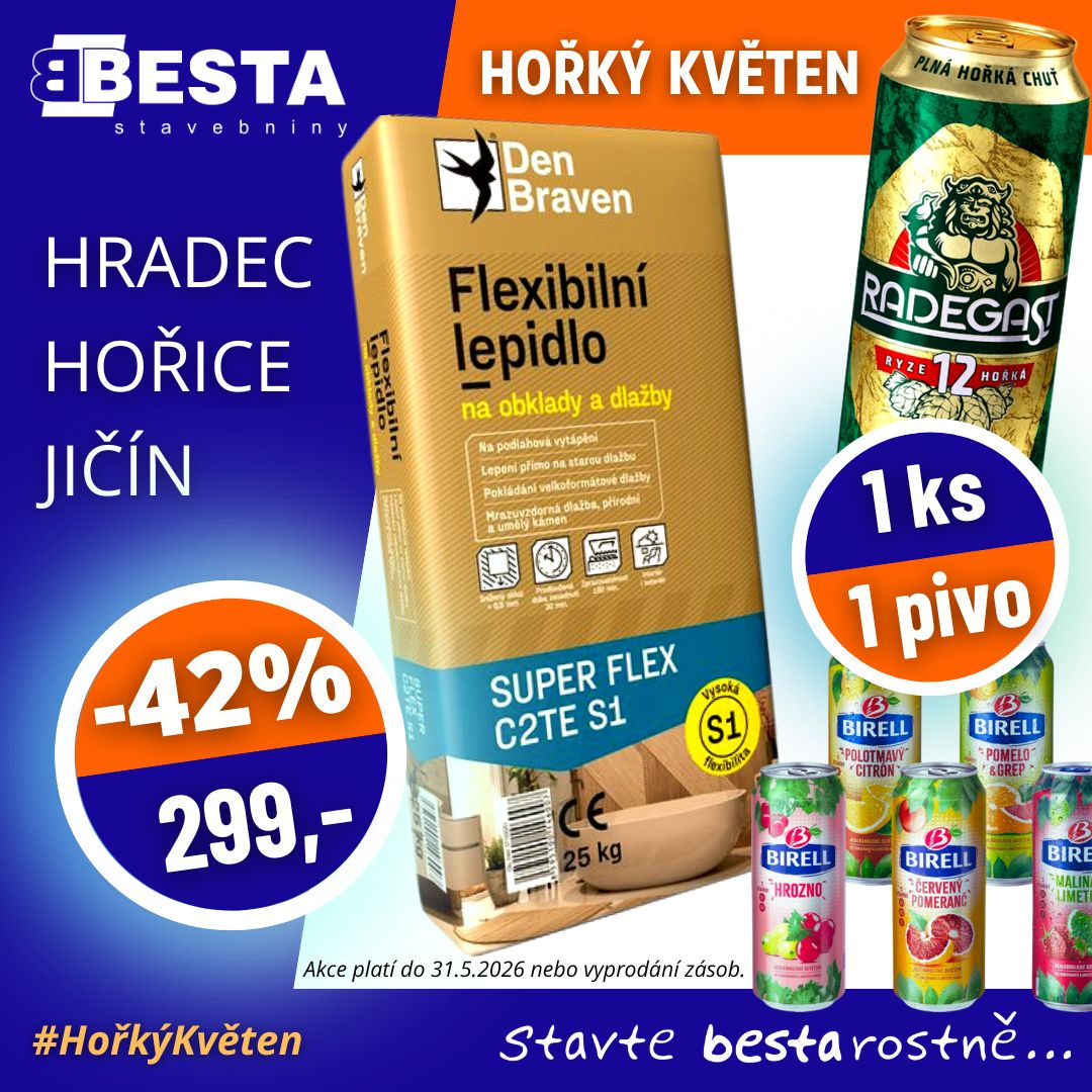 K nákupu každého pytle flexibilního lepidla SUPER FLEX C2TE S1, obdržíte nejen SLEVU 42%, ale i to nejvíc nejdůležitější PIVO.