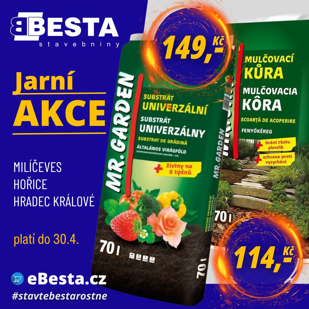 Platnost akce: do 30.4.2026 | Platí na všech prodejnách: Milíčeves, Hořice, Hradec Králové
